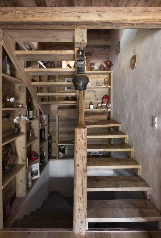 The owners wished to maintain the “grazing ground” spirit and everything was done to recreate a cosy cocoon-like feeling. Interior furnishings are mostly made from old-growth wood, with the kitchen, fireplace and stairs being in complete harmony. Upstairs, wood is omnipresent, with particular attention being paid to the cosy feeling in the 3 bedrooms and bathroom. A very nice project with particular focus on interior decoration by the owner who is passionate about the “mountain spirit”.